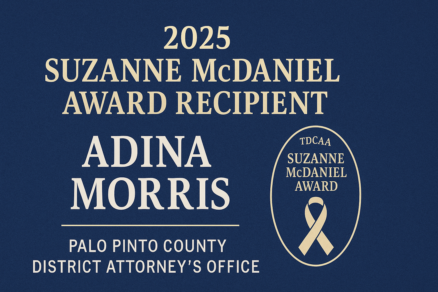 Adina Morris of the Palo Pinto County District Attorney’s Office has been named the 2025 recipient of the Suzanne McDaniel Award, a statewide honor recognizing outstanding service to crime victims.