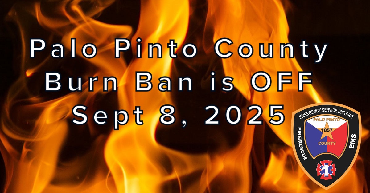 Palo Pinto County Commissioners voted to remove the Burn Ban. As of September 8, 2025, residents are allowed to burn.